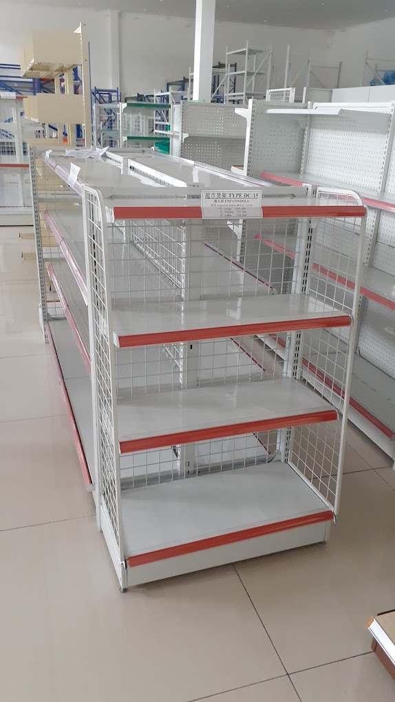 Rak minimarket gondola display adalah jenis rak display toko yang berdiri di lantai dan dapat digunakan secara single (menempel dinding) maupun double (tengah ruangan). Rak ini memiliki beberapa level shelving yang berfungsi untuk menata dan memajang produk agar mudah terlihat oleh konsumen.
